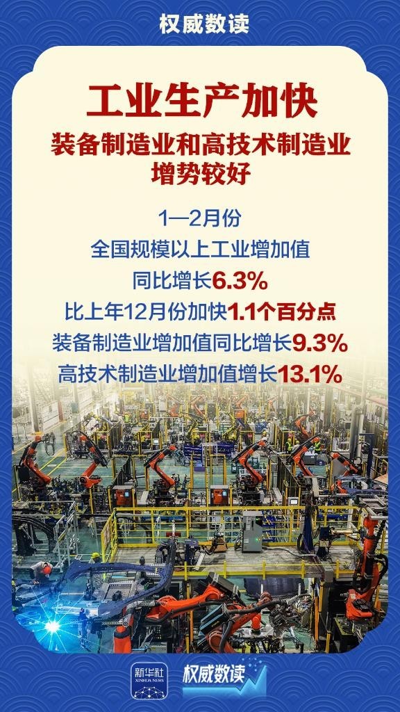 国家统计局16日发布数据显示,今年1至2月份,我国生产供给增长加快,市场需求稳中有升,物价总体稳定,新质生产力成长壮大,经济运行起步有力,实现良好开局。跟随这组海报,一起了解下。