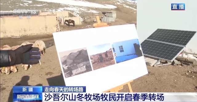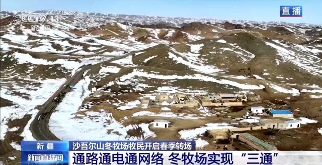 总台记者 高鹏飞:这处冬牧场叫作阔克阔拉冬牧场,意思是蓝色的羊圈,听名字就很有特色,这里是一处山谷,地形很平坦,而且向阳、背风,是很理想的越冬的冬牧场。这两天当地牧民陆续开始转场了。什那尔一家也要踏上转场路。
