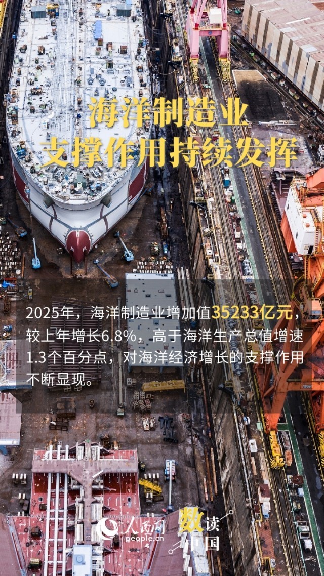 近日,自然资源部对外发布《2025年中国海洋经济统计公报》。《公报》显示,初步核算,2025年全国海洋生产总值110180亿元,占国内生产总值比重为7.9%,比上年高0.1个百分点,海洋经济稳中有进,高质量发展取得新成效。九图速览海洋经济何以持续点燃“蓝色引擎”。