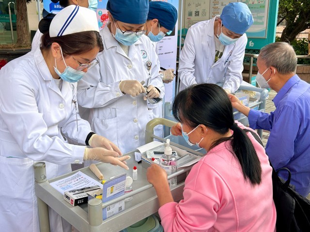 此次义诊重点服务乙肝携带者、长期饮酒者、肥胖及有肝病家族史等高危人群。现场,中山三院提供乙肝表面抗原与抗体快速检测;开展腰围测量、BMI测算,结合《肝脏健康风险简易自评表》帮助市民快速识别肝病风险;设置“扫除肝扰”知识闯关互动,让市民在答题中巩固肝病防治知识。符合条件的市民可免费接受无创肝硬度超声检查,精准评估肝纤维化程度,为早筛早诊提供依据。义诊期间,专家“一对一”问诊,为问诊者制定个性化诊疗方案与生活方式指导,让护肝知识从科普走向日常。