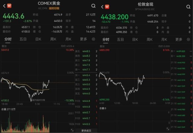 截至发稿时,国际金价盘中出现上扬,COMEX黄金和伦敦现货黄金价格跌幅均大幅收窄,重上4400美元上方。