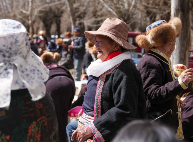 卓玛吾珠(中)和乡亲们在庆祝春耕仪式上(3月16日摄)。