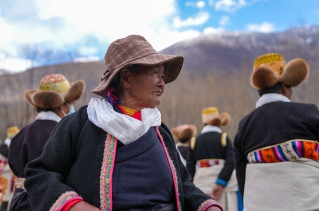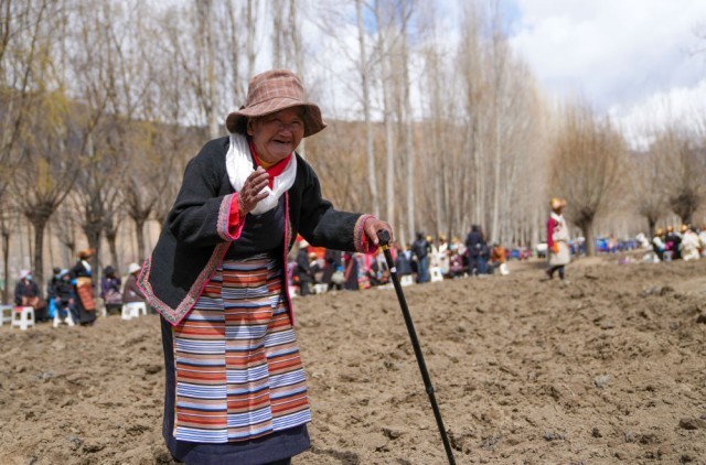 卓玛吾珠在庆祝春耕仪式上(3月16日摄)。