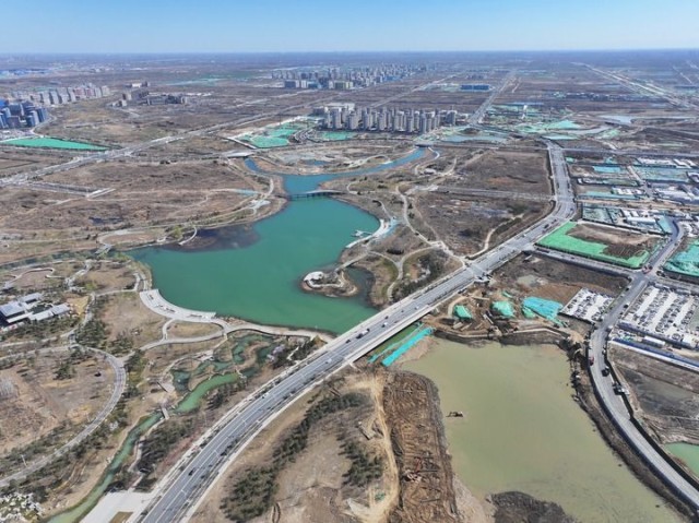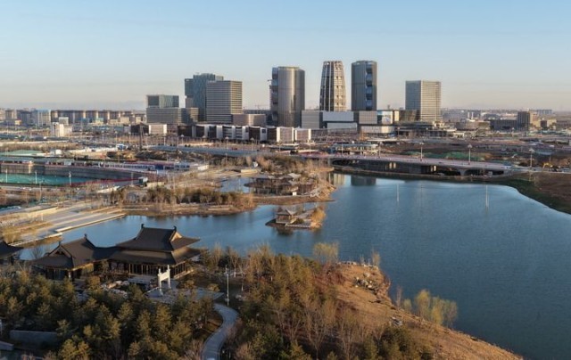 站在雄安启动区国贸中心楼顶环顾,城市核心地段的繁华景象清晰可见:3家央企总部已投入使用,5家央企总部项目建设有序推进;金融岛上,财富大厦双塔楼正装饰装修;中央绿谷铺展“水城共融”生态画卷……