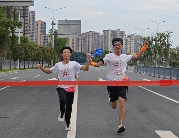 胡亮(右)和满鑫源参加2024年吉安市盲人微马活动。受访者供图