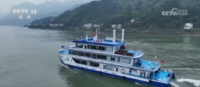 长江湖北秭归段是三峡库区,也是长江航运的关键节点。眼下,正是春季水运高峰期,在江面上能看到很多满载货物的大型运输船往来穿梭。船行江上,其实能看到一个非常明显的变化,就是过去常见的柴油船,越来越多地被新能源船所替代。比如,此时此刻我们乘坐的就是“海巡12931”纯电池动力船。它是采用锂动力电池作为全船唯一动力源,航速可达到29公里每小时,不仅跑得快,航行时无噪音、无燃油废气;相比柴油船,耗能降低三分之二左右,船舶污染物实现零排放。为了让电动船跑得稳、续航足,在长江三峡通航综合服务区,就有多种类型的绿色岸电设施,可以满足多样化的船舶用能需求。