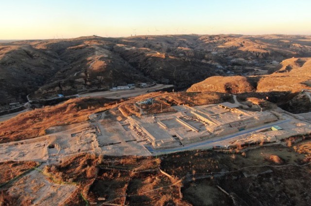 位于陕西榆林的史前城址石峁遗址(2023年11月29日摄,无人机照片)。 新华社记者 李一博 摄