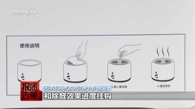 张正:涉嫌误导,比如说将除醛果冻的颜色变化和除醛效果进度挂钩,那实际上果冻颜色变化和除醛效果进度都是没有实际关联的。
