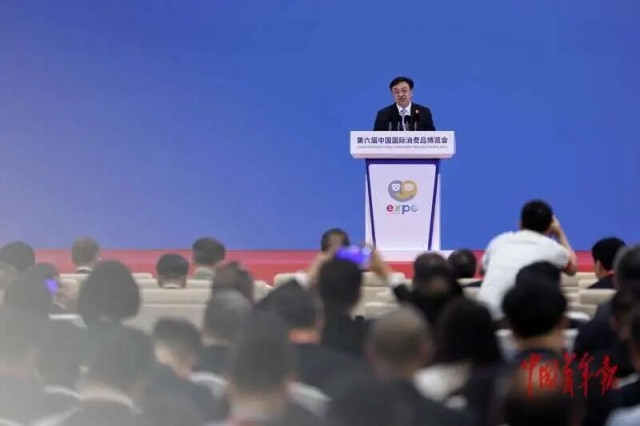 △4月13日,海南海口,第六届中国国际消费品博览会暨2026“购在中国”国际消费季启动仪式上,海南省委书记冯飞致辞。第六届中国国际消费品博览会(以下简称“消博会”)于4月13日至18日在海南省举办,主会场设置在海南国际会展中心,内设8大展馆,汇聚全球顶尖的新潮消费品。两个分展区分别为设在三亚市的国际游艇分展区和设在琼海市的国际健康消费分展区。作为亚太地区规模最大的消费精品展,第六届消博会有来自60多个国家和地区的超过3400个品牌参展,集中呈现绿色、健康、数字、智能等新型消费领域的精品、新品。(中青报·中青网记者 曲俊燕/摄 来源:中国青年报客户端 )