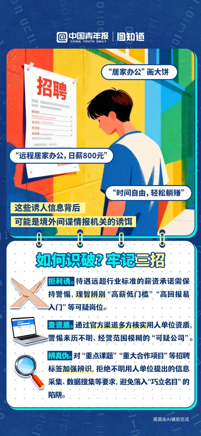 今天是第11个全民国家安全教育日。春季招聘正在火热进行中,年轻人在求职过程中,也要警惕一些来自境外间谍的陷阱,发现可疑线索,立即举报,电话:12339。祝愿大家都能找到心仪工作,守护个人前程与国家安全。