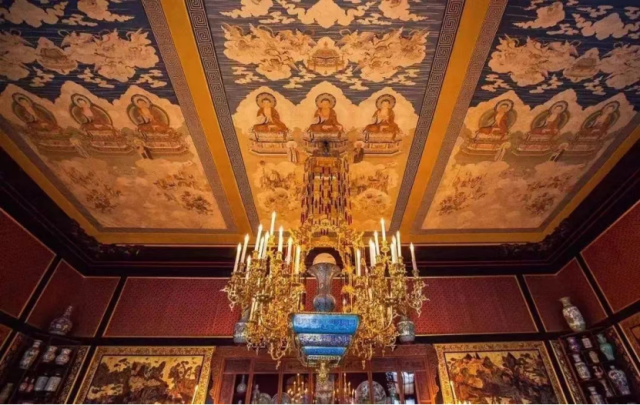 枫丹白露宫“中国馆”装饰天花板的缂丝佛画像
