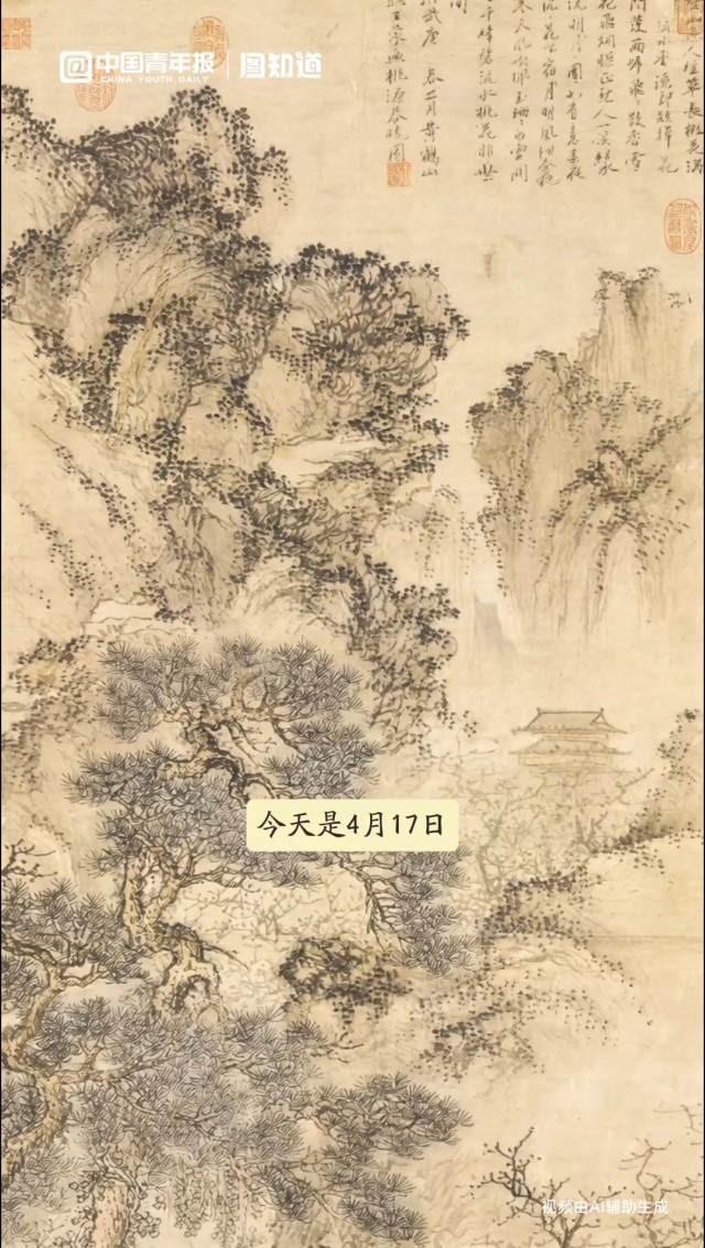 今天是4月17日,星期五,农历三月初一。《桃源春晓图》绘春水初生,渔郎撑棹徐行;夹岸桃花吐英,远山叠嶂,苔点繁密,满纸尽是春意。