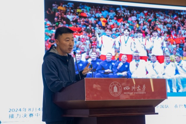 慈鑫作《你所不知道的奥运赛场外》主题分享。汪龙华/摄