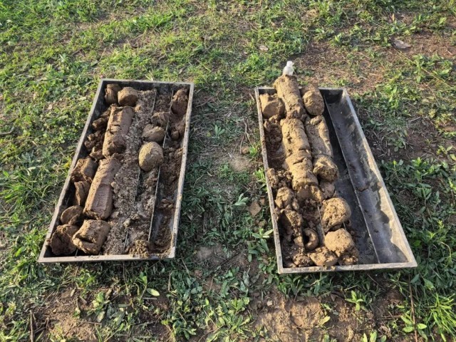 检测公司工作人员取的土样。 中青报·中青网记者 朱洪园/摄