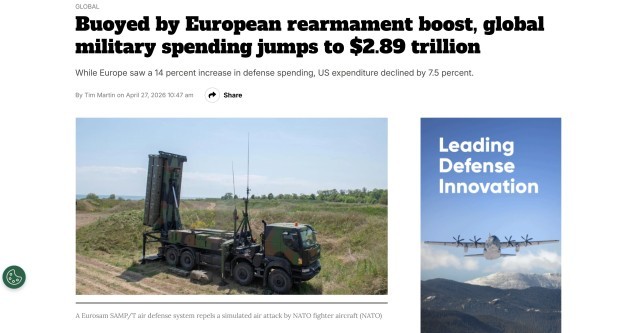 瑞典智库:全球军费创新高,欧洲“重新武装”是重要推手