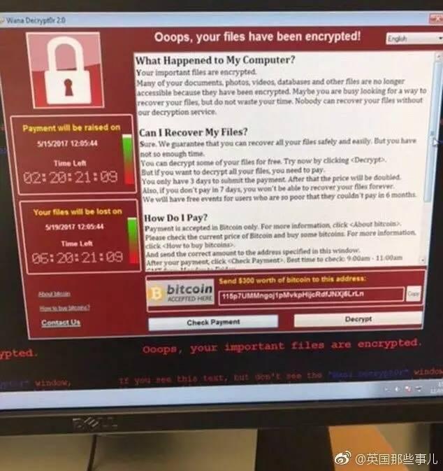 大事件,就在一个多小时以前,全英国上下16家医院遭到大范围网络攻击... 医院的内网被攻陷,电脑被锁定,电话也不通.... 黑客索要每家医院300比特币(接近400万人民币)的赎金,否则将删除所有资料.... 现在这 16家机构对外联系基本中断,内部恢复使用纸笔进行紧急预案.. 英国国家网络安全部门正在调查,现在攻击仍在进行中...