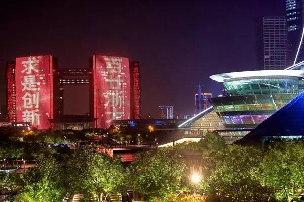 2017年5月18日,杭州钱江新城主题灯光秀增加浙大120周年校庆专场。 图/视觉中国
