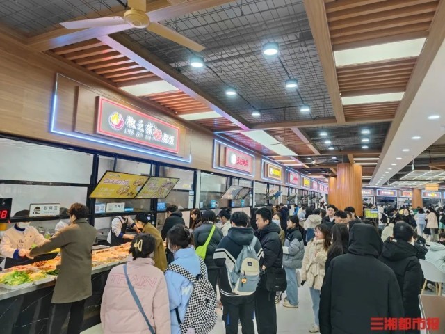 (湖南科技大学学生在食堂打菜。受访者供图)