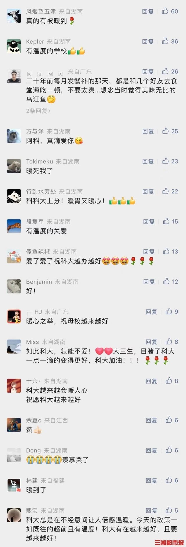 湖南高校又放资助“大招”!100万餐费将偷偷打进学生的餐卡里。湖南科技大学近日发布消息,将根据全校全日制学生(含本科生、研究生、留学生)在食堂的就餐消费大数据,无需申请,对在食堂消费次数多、每餐平均消费额度最低的2000余名学生发放餐补,总计发放金额将达100万元。