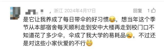 据了解,为了帮助大学生们防御“天屎”,宁波大学还专门推出了文创雨伞。