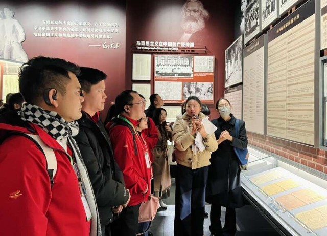 12月5日,浙江嘉兴,越南青年走进南湖革命纪念馆,了解马克思主义从欧洲传入中国、与中国革命实践相结合的历史进程。中青报·中青网记者 蒋继璇/摄