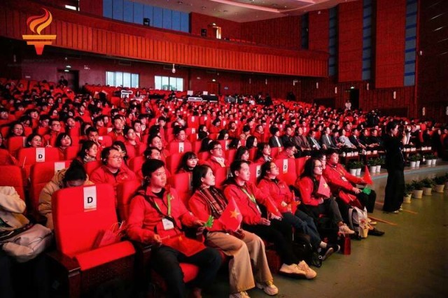 12月5日,浙江嘉兴,“理想之光”中越青年演讲会在嘉兴大学举行,以中共“一大”会议为背景的原创话剧《初心》在嘉兴大学初心剧场上演。主办方供图