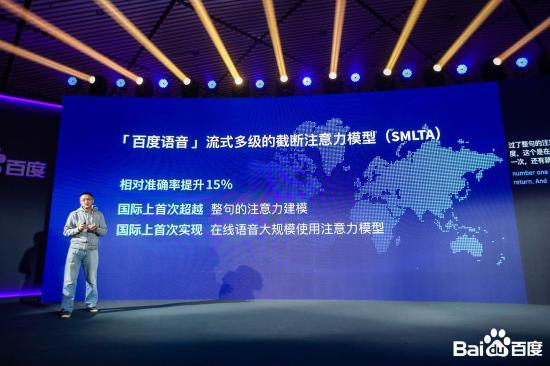 在线语音领域,百度发布流式截断多层注意力建模(SMLTA),这是中文在线语音识别历史上的两个重大突破:世界上首次实现了局部注意力建模识别精度超过全局注意力模型;世界上第一次大规模部署在线语音交互注意力模型。这一技术能够解决传统Attention模型在识别中的时延性,以及因此导致的无法进行大规模在线语音实时交互的问题,并将在线语音识别精度提升了15%,超越行业最高水平15%。
