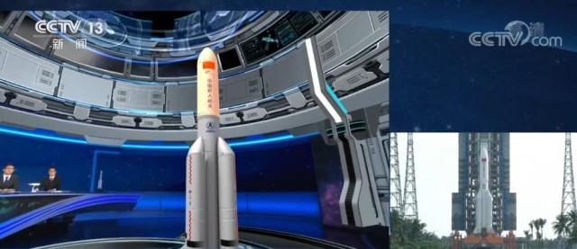 央视网消息:长征五号B运载火箭是空间站舱段的“专属座驾”,高53.7米,箭体直径5米,捆绑了4个直径3.35米的助推器。长征五号B一个最大的特点就是拥有一个超大的整流罩,长度达到20.5米,有六七层楼高,超大整流罩是为空间站大型舱段量身定制的。为什么要把这部分造得这么大?因为它要把长达17.88米的梦天实验舱整个包裹在里面。