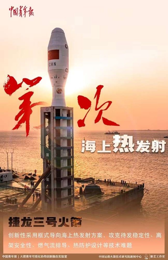 “我们实现了海上冷发射到热发射的跨越!”中国航天科技集团一院捷龙三号火箭型号副总师欧阳松说,海上热发射技术是世界级难题,放眼国际航天,成功案例少之又少,国内也没有相关经验可参考借鉴,但中国航天人实现了跨越,一步步建立自己独有的热发射技术体系。