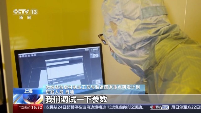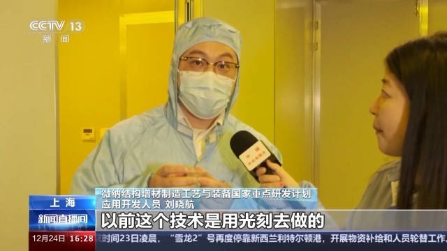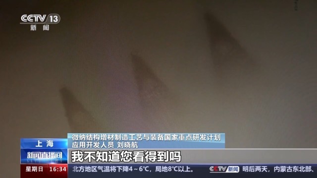 微纳结构增材制造工艺与装备国家重点研发计划应用开发人员 刘晓航:以前这个技术是用光刻去做的,光刻技术有一定问题就是加工效率比较低,我们这个3D打印,它实际上是一个立体光刻。我们保留了光刻的精度,然后在效率上是光刻的1万倍以上,解决了立体光刻这个卡脖子问题。