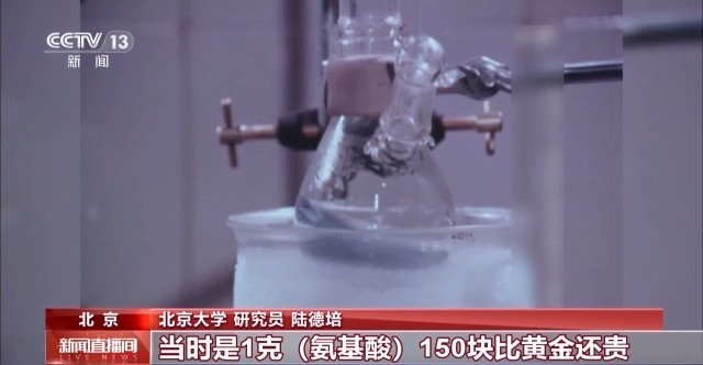 北京大学研究员 陆德培:当时是1克氨基酸150块,比黄金还贵。就是想从丝绵里提取的,所以我在上海买了一点丝绵头,就是工厂的下脚料。