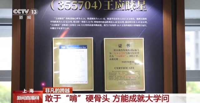 总台央视记者 牟媞媞:编号355704,这是我国紫金山天文台近年发现的一颗小行星。去年这颗小行星被国际天文联合会正式命名为王应睐星。在长长的绕日轨道上,王应睐先生的名字伴随着这颗小行星,永远闪烁在璀璨星空之中,也激励着一代又一代的科学家勇毅前行。
