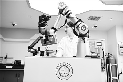 中国科学技术大学一名博士研究生在实验室调试机器化学家系统“小来”。新华社记者 张端摄