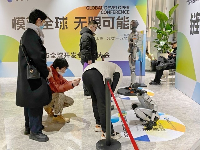 而在讲坛会场外,还专门设立了机器人展示区,十余款中国自主研发的人形机器人同台展示、各具特点,让参会者目睹和体会到中国人工智能产业从跟跑到超越的过程。