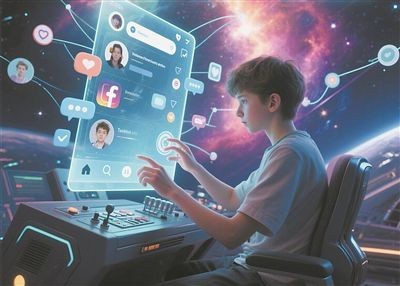 青少年通过社交媒体与朋友交流。图片由AI生成