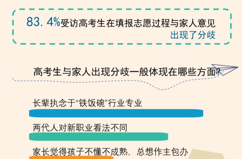 调查中,83.4%的受访高考生坦言,填报志愿过程中,与家人出现了意见分歧。