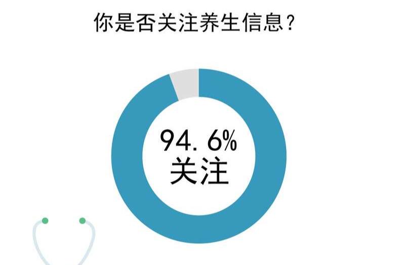 调查中,94.6%的受访大学生表示自己关注养生健康方面的信息。交互分析显示,女生受访者关注的比例(98.2%)高于男生(93.9%)。