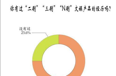 调查中,76.4%的受访者有“二刷”“三刷”“N刷”一些文娱产品(电影、连续剧、综艺等)的经历。