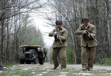 在《三八线》第18集有个情节,志愿军运输连战士张金旺和老班长开车执行任务途中,突然发现车胎没气了。他们急忙下车查看,发现不仅车胎被一个小小四角钉扎破,而且防空哨兵被暗杀!意识到情况的严重性,张金旺虽然紧急拦截了后续车队,但堆放军需物资的车站还是遭到了敌机的轰炸……