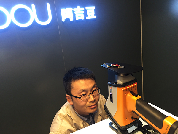 专家用X光荧光光线谱仪现场测量仿真饰品重金属含量 澎湃新闻记者 邹娟 图