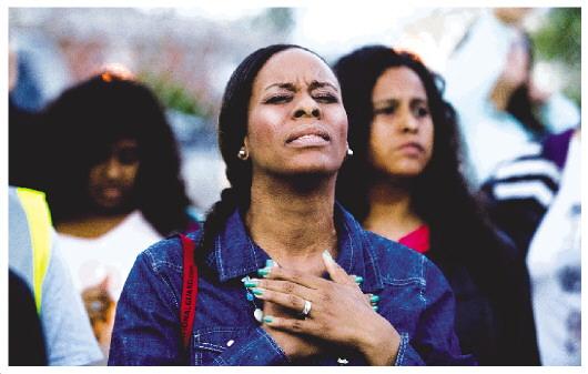 图为4月18日,在美国加利福尼亚州弗雷斯诺市,市民悼念遇害者。