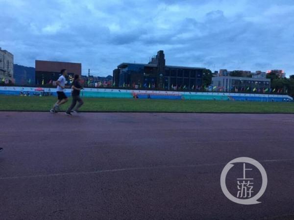 陪练的父母并不少见。晚8时,七八名中年男子手机开着倒计时,挨着孩子的跑步轨迹,在操场中间来回奔走,“加油”、“冲”、“快点”或“稳住”,还有报时声,声声不绝。