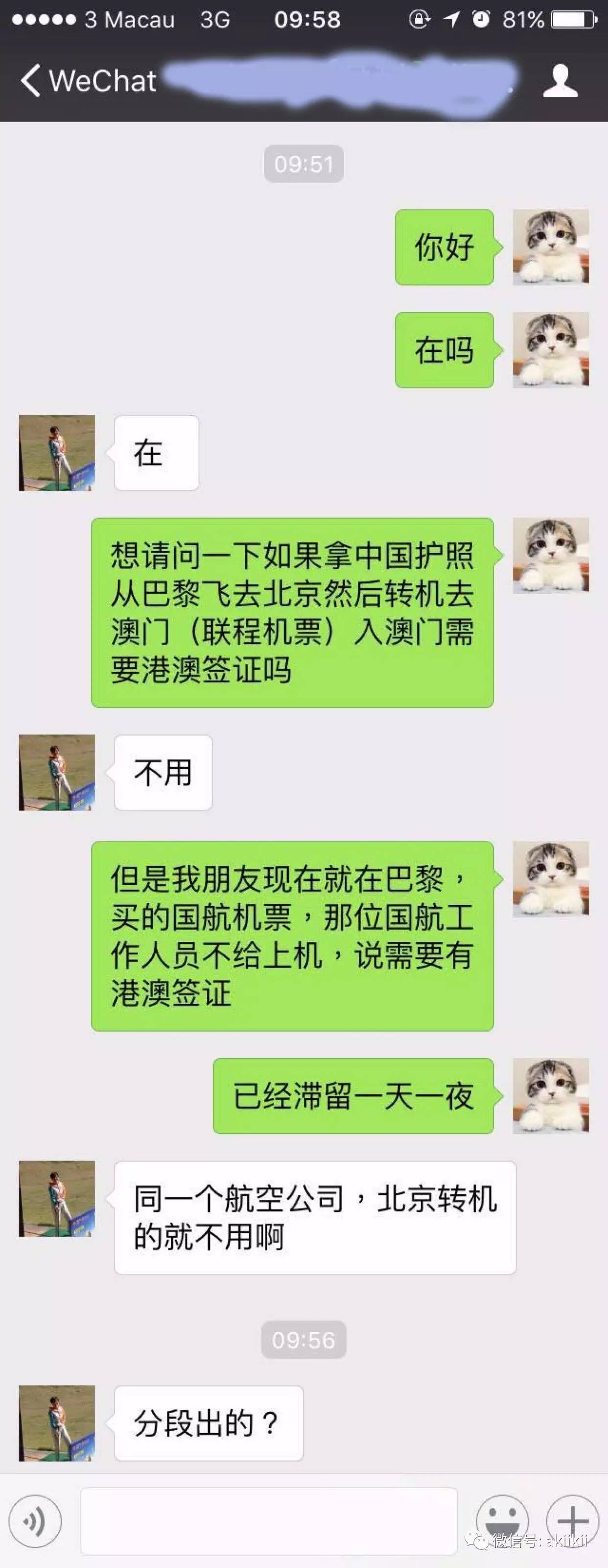 想到这点我们又打电话给大使馆,询问我们护照问题。大使馆说是可以使用护照的,我们再次把电话信息告诉她,值班经理不接,她说她没有义务接这个电话。“反正持中国护照回澳门,没有通行证,你们巴黎飞北京这一程都不能去。”