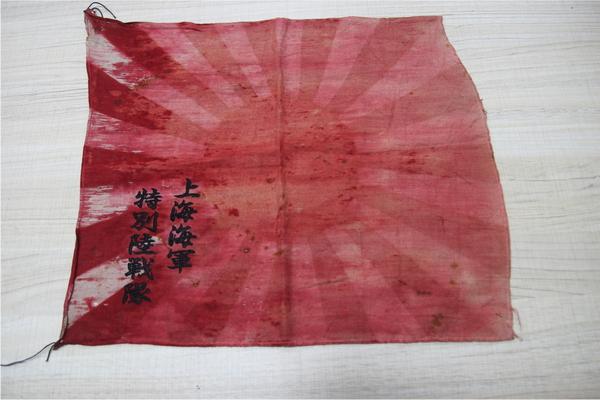 还留有斑斑血迹的上海海军特别陆战队军旗