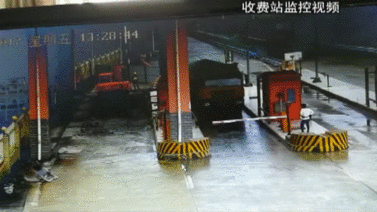 通过收费站的监控可以看到,由于货车满载甚至超载,而且车速过快,很多时候都无法及时停下来,冲关的情况时常发生,而收费站内的设施也因此屡遭破坏。