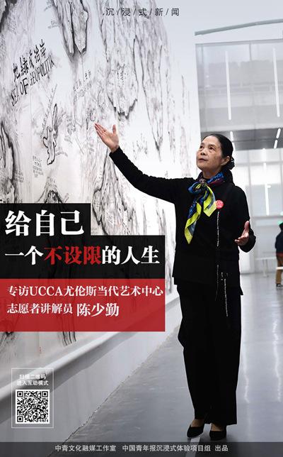 在北京的UCCA尤伦斯当代艺术中心,有一位特别的志愿讲解员,她年近70、身材瘦小,她目光矍铄、自信亲和,她走路飞快、讲着一口流利的“福建普通话”,她是馆里乃至全国年龄最大的当代艺术讲解员,平均每个展览期间要讲解近300个小时。每当讲解开始,演说家般的自信气场和学者般的学识气度,以及对当代艺术精准而生动的分析与洞察力,令无数观众赞赏、折服。她就是陈少勤。