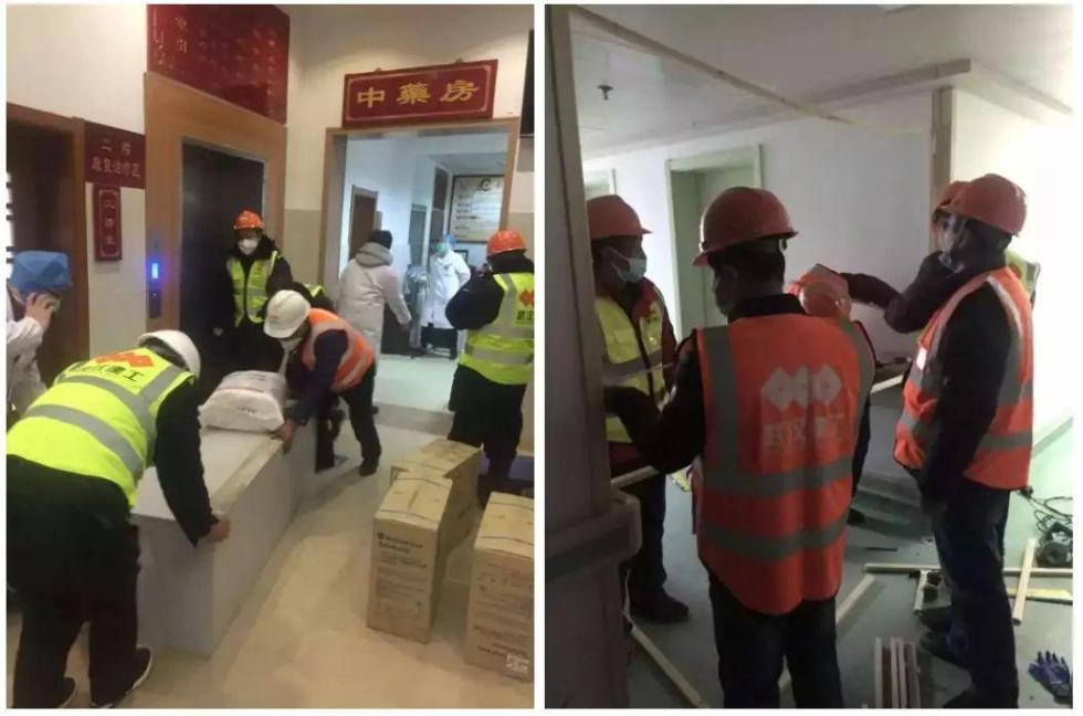 1月22日,武汉建工集团接到应急任务安排,需要立即为武汉市四医院、五医院、九医院、武昌医院进行发热门诊应急隔离隔断施工搭设。立即成立四个小组奔赴各医院,与相关部门负责人现场商量搭建方案,落实物资筹备,组织工人购买建筑材料奔赴现场开始施工。武汉建工共投入专班力量40人,组织220余人进行应急专项施工工作。