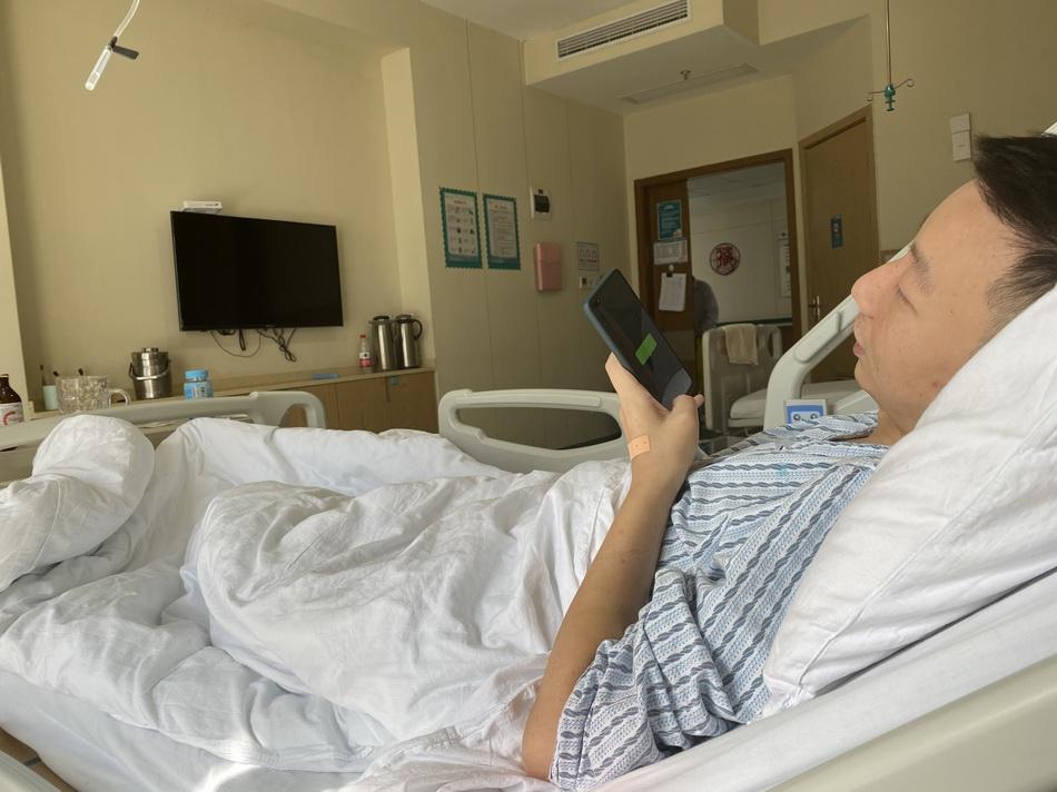 但有来访者进入病房,姚策依然会用中气十足的声音接待,开起玩笑,“早上忘记洗头了,我这形象还可以吧?”病友发来信息,他一条条回复,“千万要加油啊”;要是没有好消息,他在抖音就很少更新。