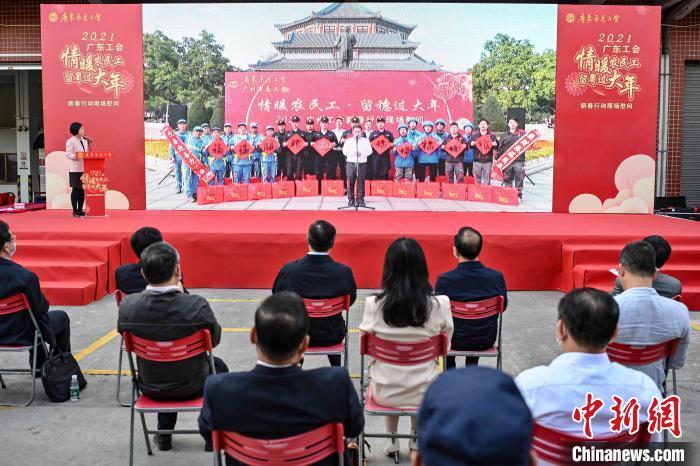 中新网广州2月1日电 (蔡敏婕 王娅)广东省总工会2月1日在佛山开展新春行动,关爱留粤过年的异地务工人员。