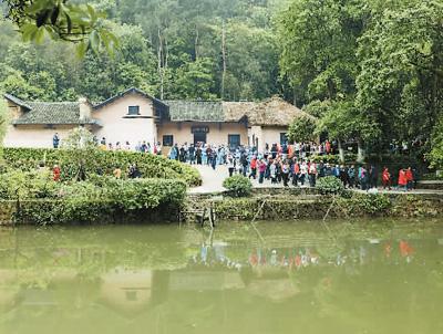 重新开放的毛泽东同志故居景色优美,游人如织。故居前的水面为南岸塘。毛泽东少时曾时常在此处游泳。 宋斌 摄